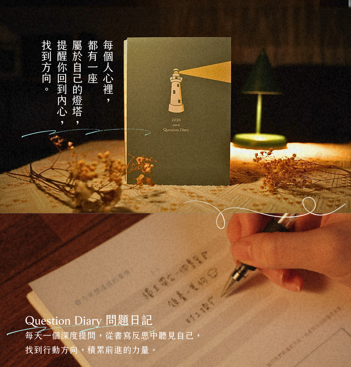 今年我們將推出《2026 一個人生活手帳|own Question Diary》,希望藉由獨處過程中的反思,引導每個人享受和自己相處,更加了解自我,現在手帳的募資也正式上線了!
