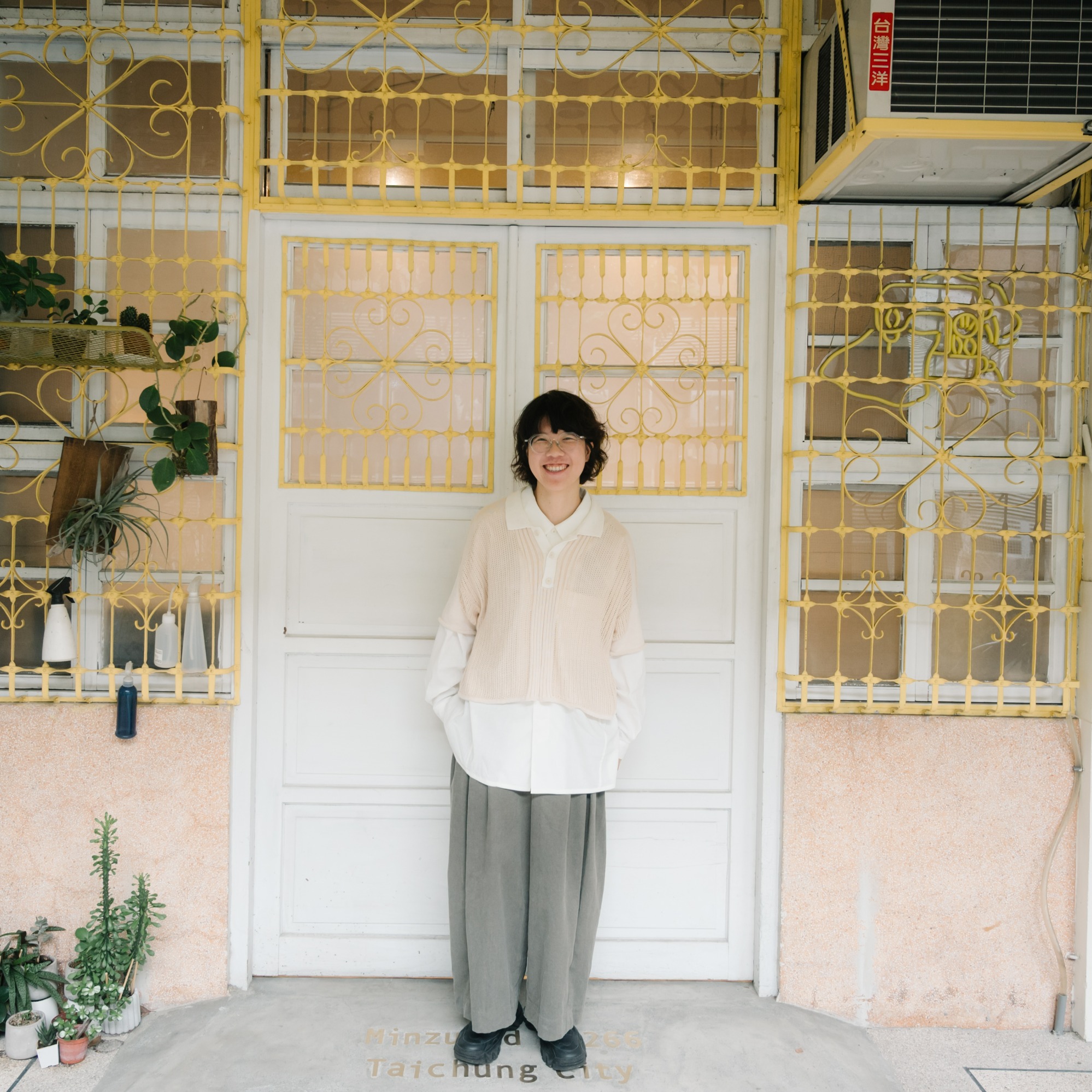 巷子裡,一戶人家以刷白的傳統毛玻璃大門為底,將鐵窗花漆上溫潤的奶油黃。個性的上色與對老屋構造的保留,令路過的人不免多看幾眼。環顧周圍,沒有裝設明顯的招牌,僅門前一串刻印英文字 Minzu Rd No.266 Taichung City(店址)。認識的人才知道,這戶人家,其實是服裝設計師小張的工作室。