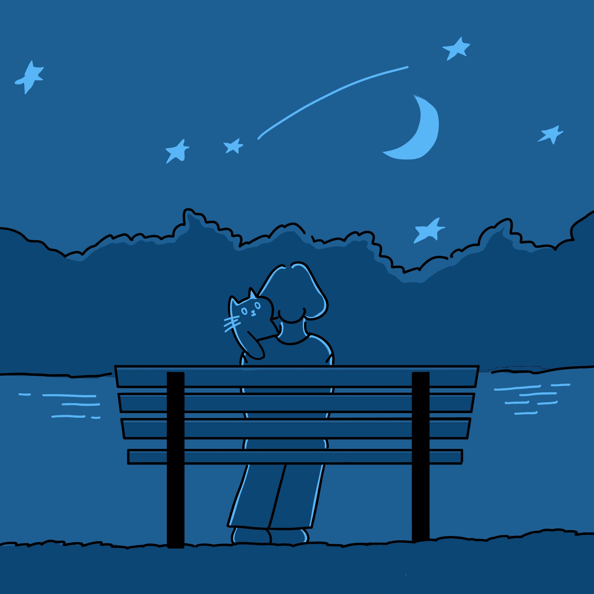 貓的眼睛透明而輕薄,像是藏著星塵大海,它與小 own 四目相對,也與天上星光相互輝映。