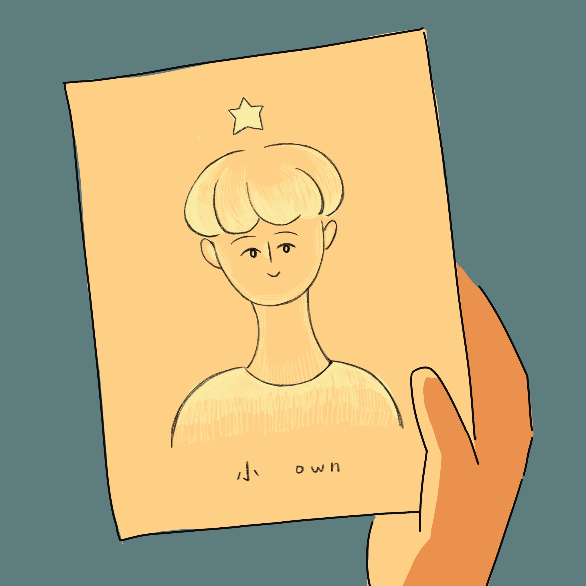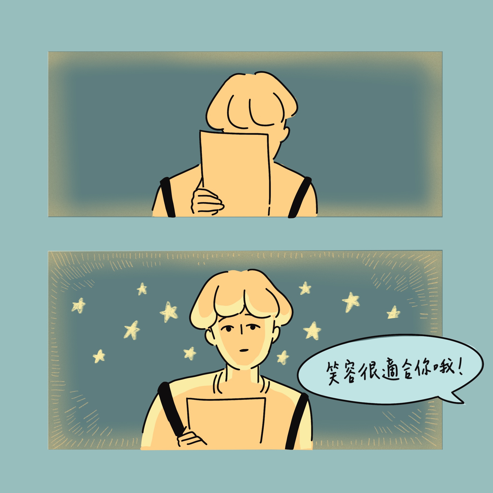 「謝謝。」小own 接過他的似顏繪,發現竟然是充滿陽光的畫面。