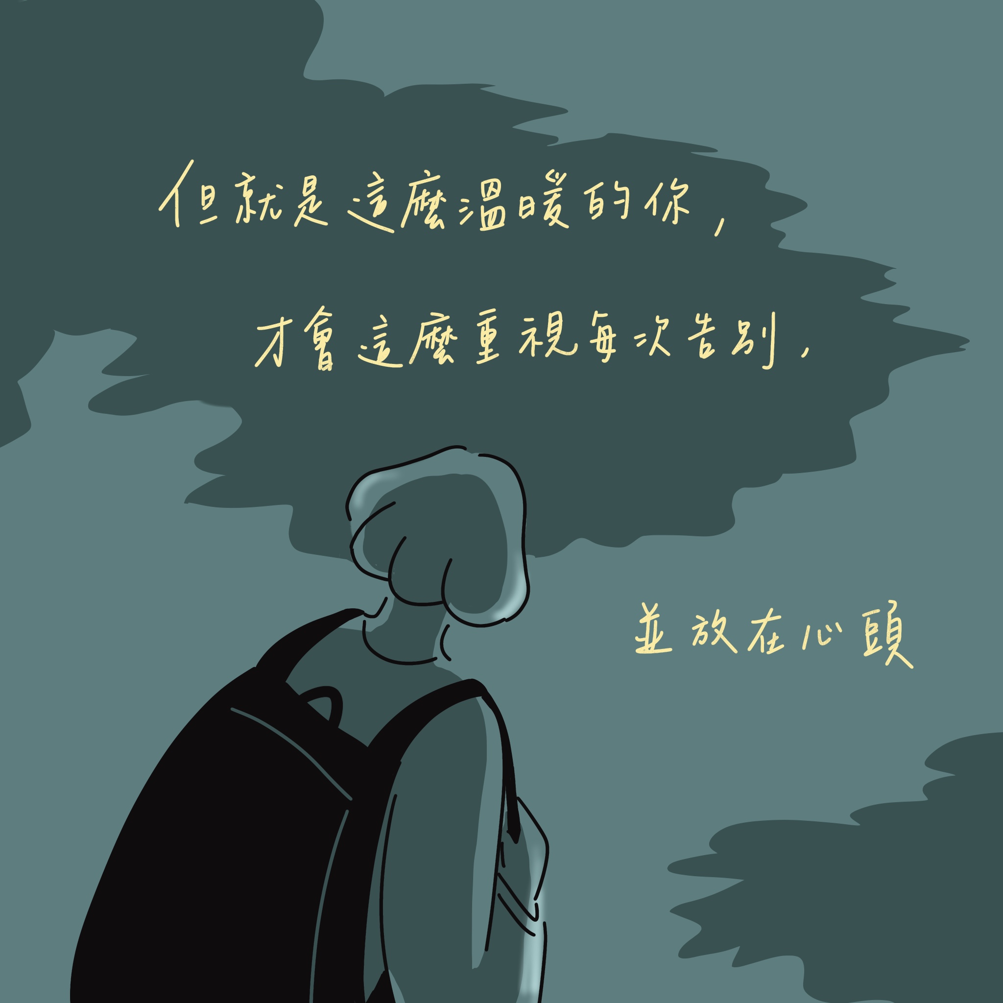 告別,可以悲傷、可以不捨,可以心痛、可以哭泣,但就是這麼溫暖的你,才會這麼重視每次告別,並放在心頭,你的這份溫暖也同樣值得被珍視,好好地被收藏。