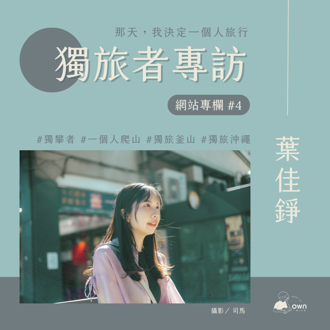 「那天,我決定一個人旅行」為《own 一個人生活》企劃的網站系列專欄,採訪擁有不同經驗的獨旅者們,分享一個人旅行的自由與體驗。