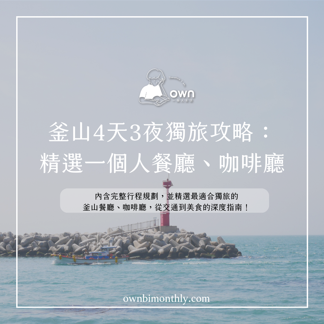 在收拾行李出發前,先跟著 own 編看看自己適合去哪個城市獨旅,並同步收下我們準備的釜山交通、美食攻略與完整行程規劃。